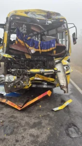 ਧੁੰਦ ਕਾਰਨ ਅੰਮ੍ਰਿਤਸਰ ਅਤੇ ਜਲੰਧਰ ਵਿੱਚ ਦ੍ਰਿਸ਼ਟੀ ਕਾਫ਼ੀ ਘੱਟ ਗਈ ਹੈ। ਇਸੇ ਕਾਰਨ ਅੱਜ ਜਲੰਧਰ ਦੇ ਪੀਏਪੀ ਚੌਕ ‘ਤੇ ਇੱਕ ਟਰੱਕ ਪੰਜਾਬ ਰੋਡਵੇਜ਼ ਦੀ ਬੱਸ ਅਤੇ ਇੱਕ ਨਿੱਜੀ ਬੱਸ ਨਾਲ ਟਕਰਾ ਗਿਆ। PRTC ਬੱਸ ਪਹਿਲਾਂ ਟਰੱਕ ਨਾਲ ਟਕਰਾ ਗਈ, ਫਿਰ ਇੱਕ ਨਿੱਜੀ ਬੱਸ ਨਾਲ। ਇਸ ਹਾਦਸੇ ਵਿੱਚ PRTC ਬੱਸ ਪੂਰੀ ਤਰ੍ਹਾਂ ਤਬਾਹ ਹੋ ਗਈ, ਅਤੇ ਬੱਸ ਦਾ ਅਗਲਾ ਹਿੱਸਾ ਬੁਰੀ ਤਰ੍ਹਾਂ ਨੁਕਸਾਨਿਆ ਗਿਆ।