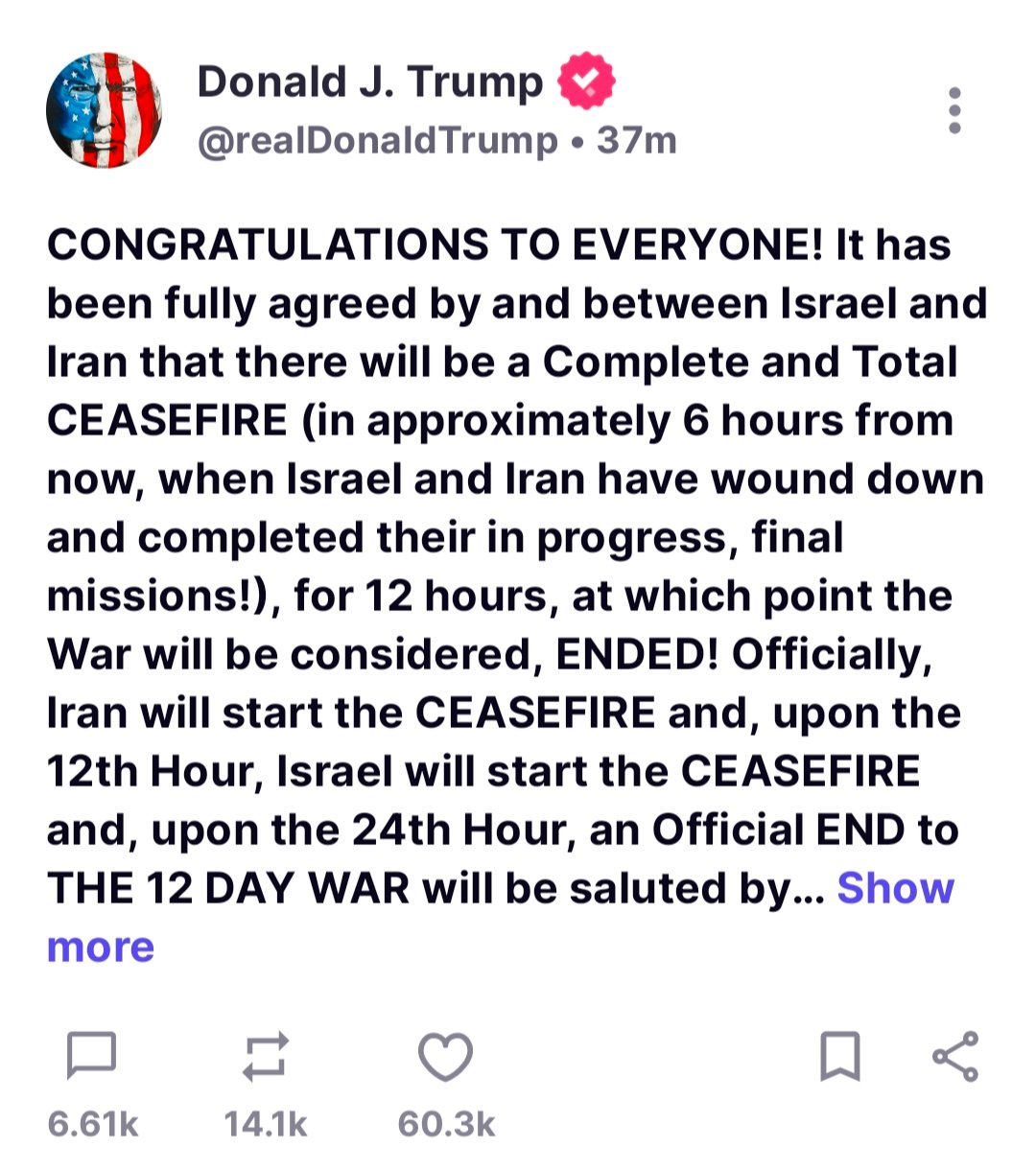 ਅਮਰੀਕੀ ਰਾਸ਼ਟਰਪਤੀ ਡੋਨਾਲਡ ਟਰੰਪ ਨੇ ਕਿਹਾ ਕਿ ਈਰਾਨ ਨੇ ਆਪਣੇ ਪਰਮਾਣੂ ਠਿਕਾਣਿਆਂ ‘ਤੇ ਅਮਰੀਕੀ ਹਮਲੇ ਦਾ ਜਵਾਬ ਕਮਜ਼ੋਰ ਢੰਗ ਨਾਲ ਦਿੱਤਾ, ਜਿਵੇਂ ਕਿ ਅਮਰੀਕਾ ਨੂੰ ਉਮੀਦ ਸੀ। ਕਤਰ ਦਾ ਅਲ-ਉਦੀਦ ਏਅਰਬੇਸ ਮਿਡਲ ਈਸਟ ਵਿੱਚ ਅਮਰੀਕਾ ਦਾ ਸਭ ਤੋਂ ਵੱਡਾ ਫੌਜੀ ਅੱਡਾ ਹੈ। ਇੱਥੇ ਲਗਭਗ 8,000 ਤੋਂ 10,000 ਅਮਰੀਕੀ ਸੈਨਿਕ ਮੌਜੂਦ ਹਨ।
